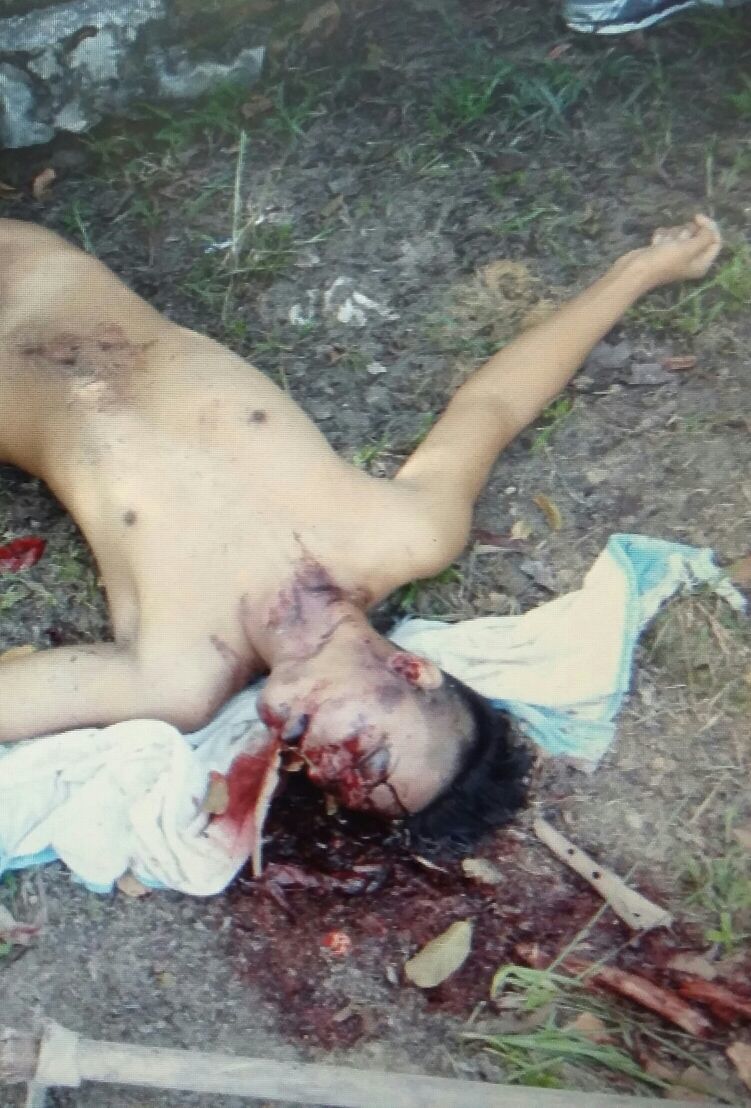 O corpo do jovem de 17 anos teve cortes no rosto causadas por enxadadas e um furo no olho que, de acordo com Pimpolho, foi feito por Valdo, que utilizou um ciscador de terra para isso. Preservativos também foram encontrados próximo ao corpo.